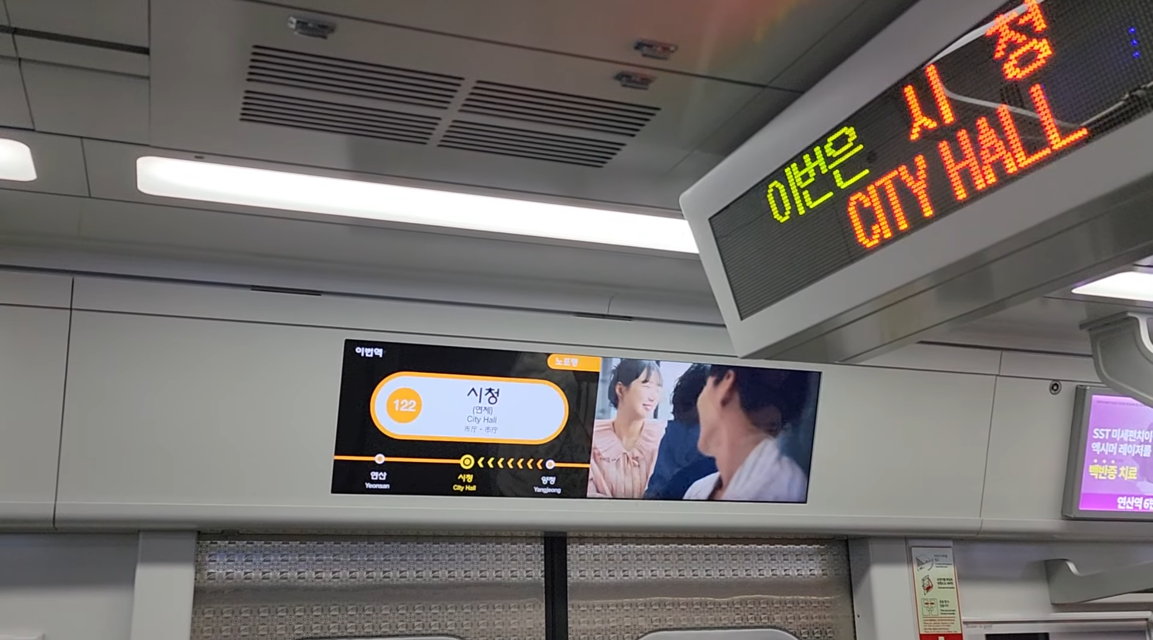 If you’re heading towards Haeundae Beach, you’ll hear waves and seagulls before the announcement, and if you’re heading in the opposite direction towards Busan Port, you’ll hear a ship’s horn. So, if you’re unsure of the incoming train’s direction or can’t hear the announcement clearly, you just need to listen out for those sounds.